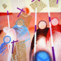 Часто я просыпался с больной головой и обнаруживал вокруг незнакомые мне картоны, измазанные разноцветной краской. «Кто бы это мог сделать?» – думалось мне. И никак не вспоминалось. Так было несколько раз, пока, наконец, память моя не зацепила момент, когда никто иной, как я сам, своими собственными руками, пьяный в драбодан, живописал! Как оказалось потом, я создавал ассоциативные абстрактные композиции, которые отражали мои бредовые, чувственные миражи на вполне конкретные музыкальные темы. Под воздействием огромных алкогольных доз мое подсознание выдавало их с постоянством достойным продолжения. И я продолжил. Мои друзья Виктор Богорад и Борис Митавский делали то же самое. В 1969 году я начал развивать направление «Метаэлементализм» © в изобразительном искусстве, как трансформацию звука в цвет в технологии контрколлажа.