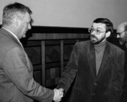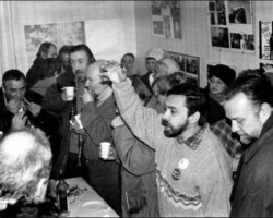 В то время мы увлекались авторскими песнями Высоцкого, Окуджавы, Клячкина, Кукина. Это настолько было другое, нежели то, что мы слышали с официальной эстрады по радио и ТВ, и так будоражило мысли и чувства, что заставляло критически всматриваться в окружающую нас жизнь. Помню, Боря Митавский принес магнитофонные пленки с 24 часами записей песен, неизвестного нам дотоле, Александра Галича. Моя магнитофонная приставка «Нота» и Борин магнитофон «Юпитер» были состыкованы, и, переписывая пленку, я погрузился в тексты, смысл которых, не всегда понятный, поразил меня как откровение свыше. Эмоционально же я был так подавлен, что после окончания переписи несколько месяцев не прикасался к пленкам, осмысливая услышанное. Было совершенно очевидно, что параллельно нашему юношескому миру существовал иной мир – жестокий и отвратительный. И я, воспитанный на литературной романтике, где честь и отвага были превыше всего, чувствовал, что место мое там, где надо отстаивать справедливость. Сейчас читаешь эти строки, и наивно это кажется и хорошо. И я думаю, что именно тогда совесть моя была разбужена, и почитаю Александра Галича как одного из первых своей учителей с большой буквы.