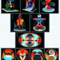 САН САН КА РА создаёт геометрические композиции идея которых заключается в том, чтобы локальные светоцветовые «наглядные идеалы» закономерно включить в «наглядные идеалы» геометрических фигур, одновременно принадлежащих как умосозерцанию, так и вещественному миру и создать из них смысловой кристалл картины мира (эйдос) и знаково-символический язык (логос), что есть логос эйдоса.