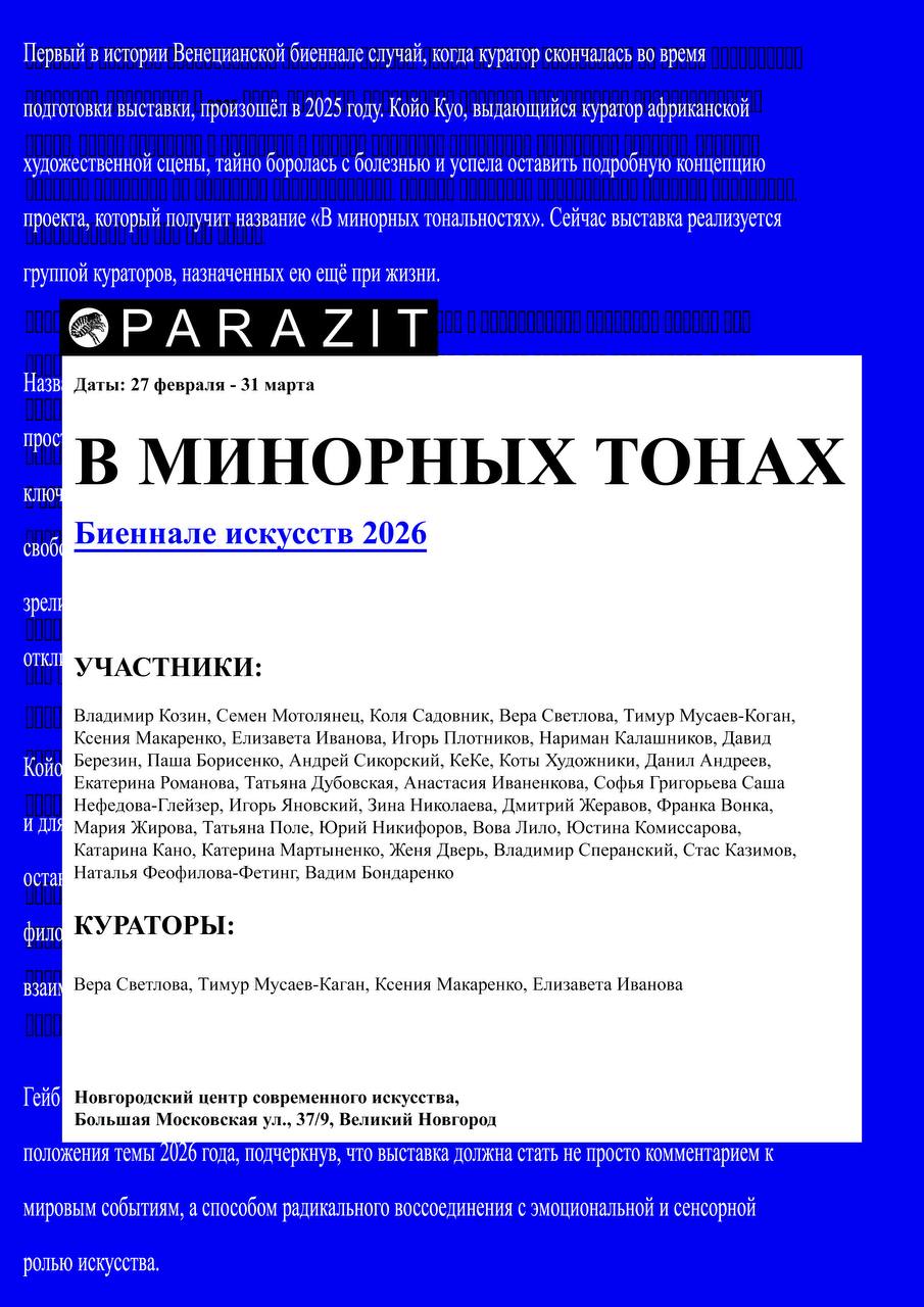 Объединение ПАРАЗИТ в Великом Новгороде и «В минорных тонах»