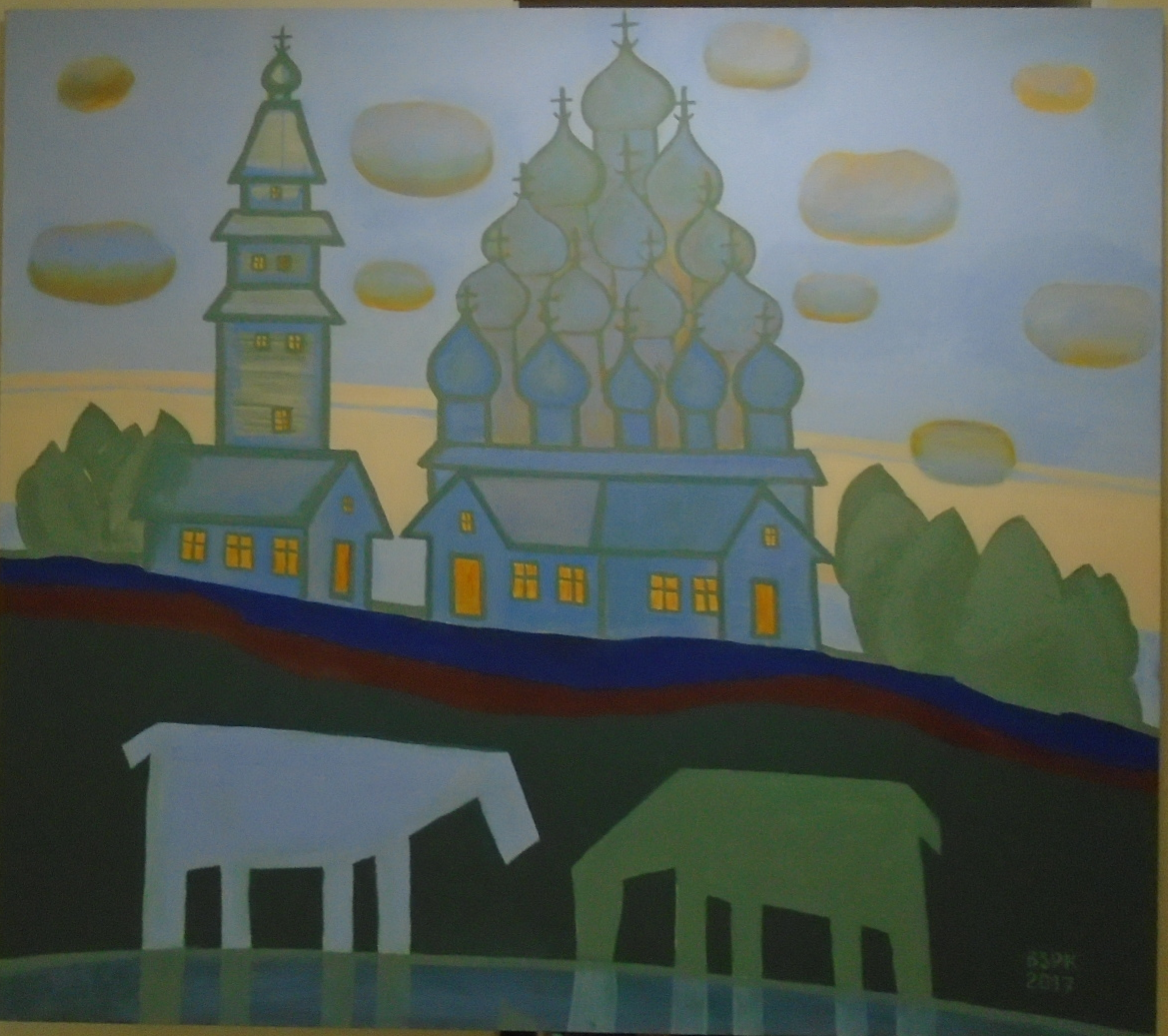 Соответствие масштаба изображения и физической величины произведения (размера картинной плоскости) – одна из труднейших задач в искусстве. Александр Визиряко решает ее с удивительной легкостью. Каждое его полотно выдерживает многократное увеличение. Изобразительные средства Александра лаконичны. Несмотря на экономию этих средств, художник мастерски справляется с очередной задачей школы: структура произведения должна «отражать вселенскую Гармонию». Сказать иначе: «произведения становятся частичками необъятной Вселенной».<…> Пластические обретения художника: он мыслит большими плоскими формами, практически силуэтами, передающими нематериальную природу вневременных сущностей: вечно живет и трудится на планете человек в симбиозе с другом-помощником – домашним скотом. Образы-фантомы: так было и так будет. Картины Евразийского цикла – плод многолетних раздумий А. Визиряко, поисков новых путей развития русского авангарда.