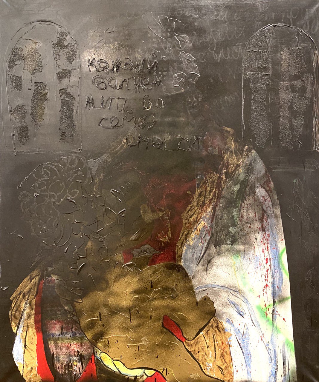 Так, гипсовые таблички — кристаллизованные вскрики, обрывки музыкального полотна. На их поверхности вплетены внутренние зовы, собирающиеся в обертон. В этом безурядье мерцают фрагменты личной истории художницы. В диалоге медиумов и обрывках строк, в тишине, становится возможно услышать пробуждение непостижимого. Твердость гипса тут встречается с гибкостью металла, вечное — с мимолетным, а молчание — с первозвучным.