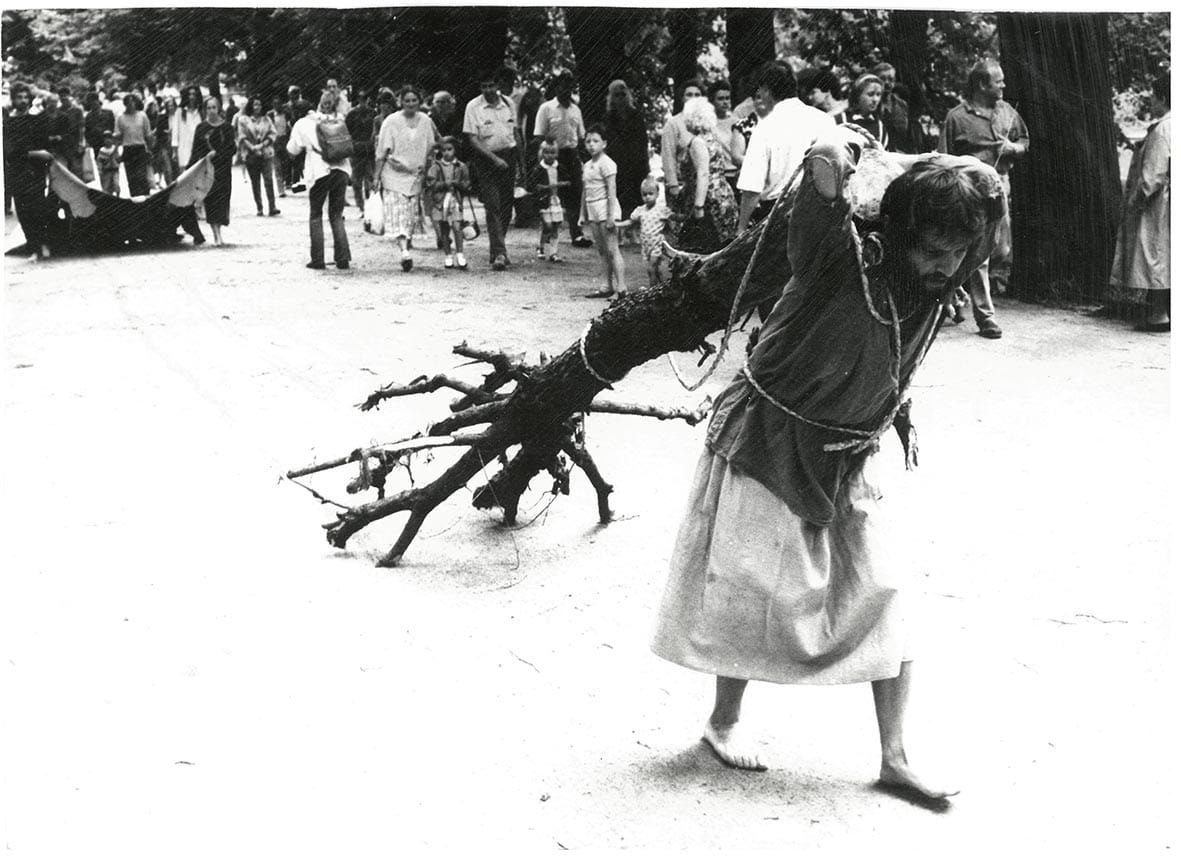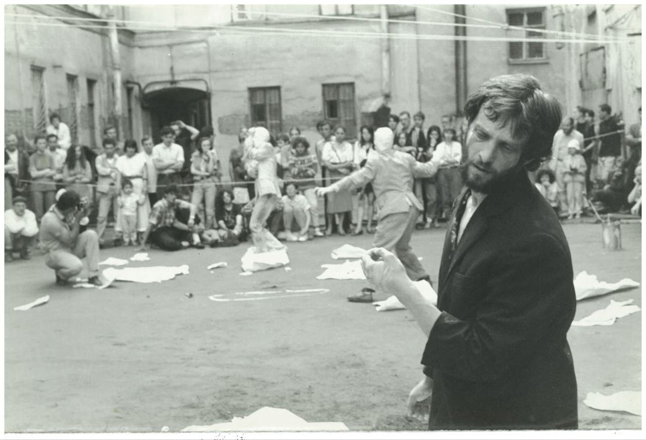 В истории перформанса 90-х годов есть еще, что исследовать. В1992 -1993 годах на Пушкинской 10, в помещении, где сейчас находится Музей Нонконформистского искусства, обитал пластический театр «Лаборатория движения» Владимира Бойкова. Ранее Бойков сотрудничал с театрами «Дерево», «До-театр», Театром «Off». Творческий процесс «Лаборатории» был построен на совместной импровизации и рождении спектакля из импровизации каждого участника. Но целью Владимира не было создание Театра. Его интересовал именно процесс, а не создание структуры с регулярными спектаклями и постоянным составом участников. В основе его видения — взгляд на театр, как на мистерию, где происходит самое Настоящее. Опираясь на работы европейских мастеров — Антонена Арто, Ежи Гратовского, мастеров японского театра буто, восхищаясь творчеством Пины Бауш, Владимир работал именно в формате творческой лаборатории, собирая круг художников, музыкантов, сотрудничая с актерами других театров и пластических студий. Часто движение строилось вокруг предмета, превращая его в «волшебного помощника» из сказки, проводника в иные миры. Был период, когда активно использовалось окрашивание тела в белый, черный, красный, золотой цвета, делая Владимира неким хтоническим существом, рядом с которым пространство могло искривляться и открывать вход в сакральное измерение.