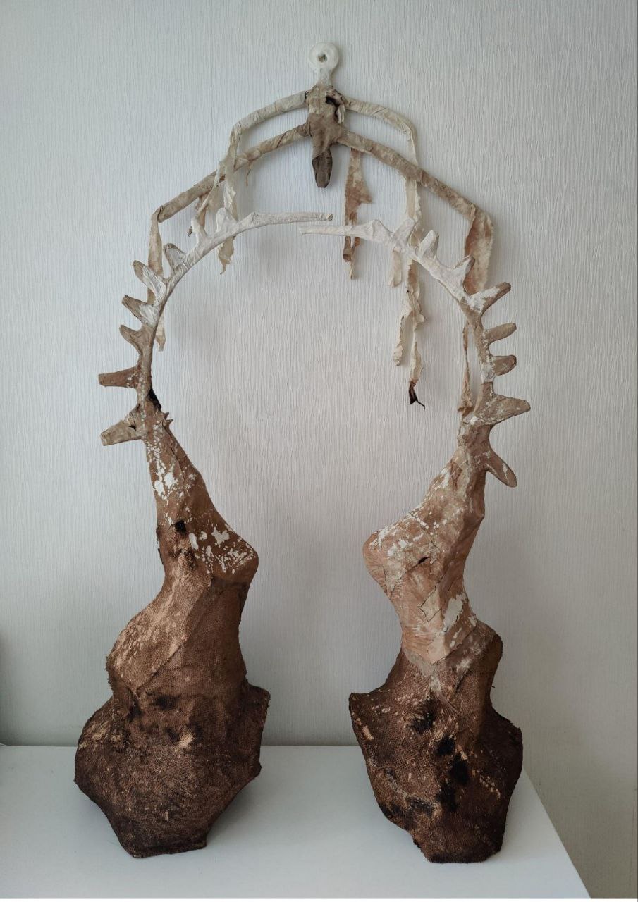 Уже на пороге экспозиции – в пространстве своеобразного портала регенераций – ясно, что все объекты выставки прошли через второе рождение. То, что было просто тканью, стало зверем, человеком, деревом… То, что было деревом стало новой сущностью. Темная неорганическая жизнь вещей эволюционировала от естественного без-образия к насыщенной и яркой образности. В этом арт-бестиарии всё одновременно знакомо и неузнаваемо, видимо и невидимо, тактильно и вместе с тем умственно доступно.