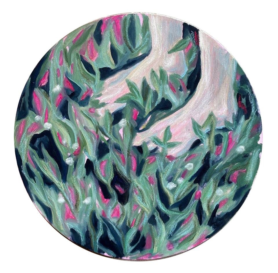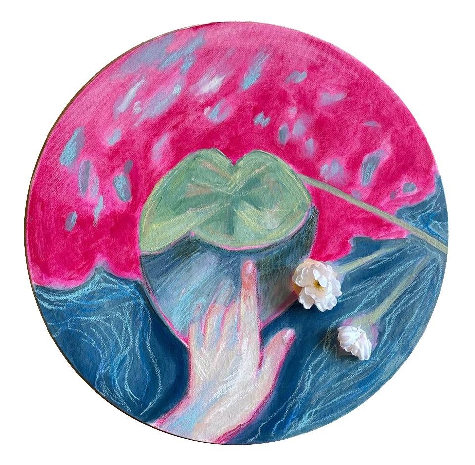 Выставка объединяет пейзажные миниатюры, выполненные на пленэре, и новую серию живописных сюжетных холстов, представляющих зарождающуюся и завораживающую вселенную художницы. Образы этой индивидуальной мифопеи имеют характерные для состояния «между» особенности. Объекты и ландшафты искажаются будто через линзу: сферическая перспектива используется художницей, чтобы создать иной мир, акцентируя взгляд на деталях и гармонизируя пространство холста. Это пространство ирреально: сломанный фокус восприятия, одухотворенные стихии, недосягаемые фантомные лики создают ощущение межмирья, будто сна или фантазии.