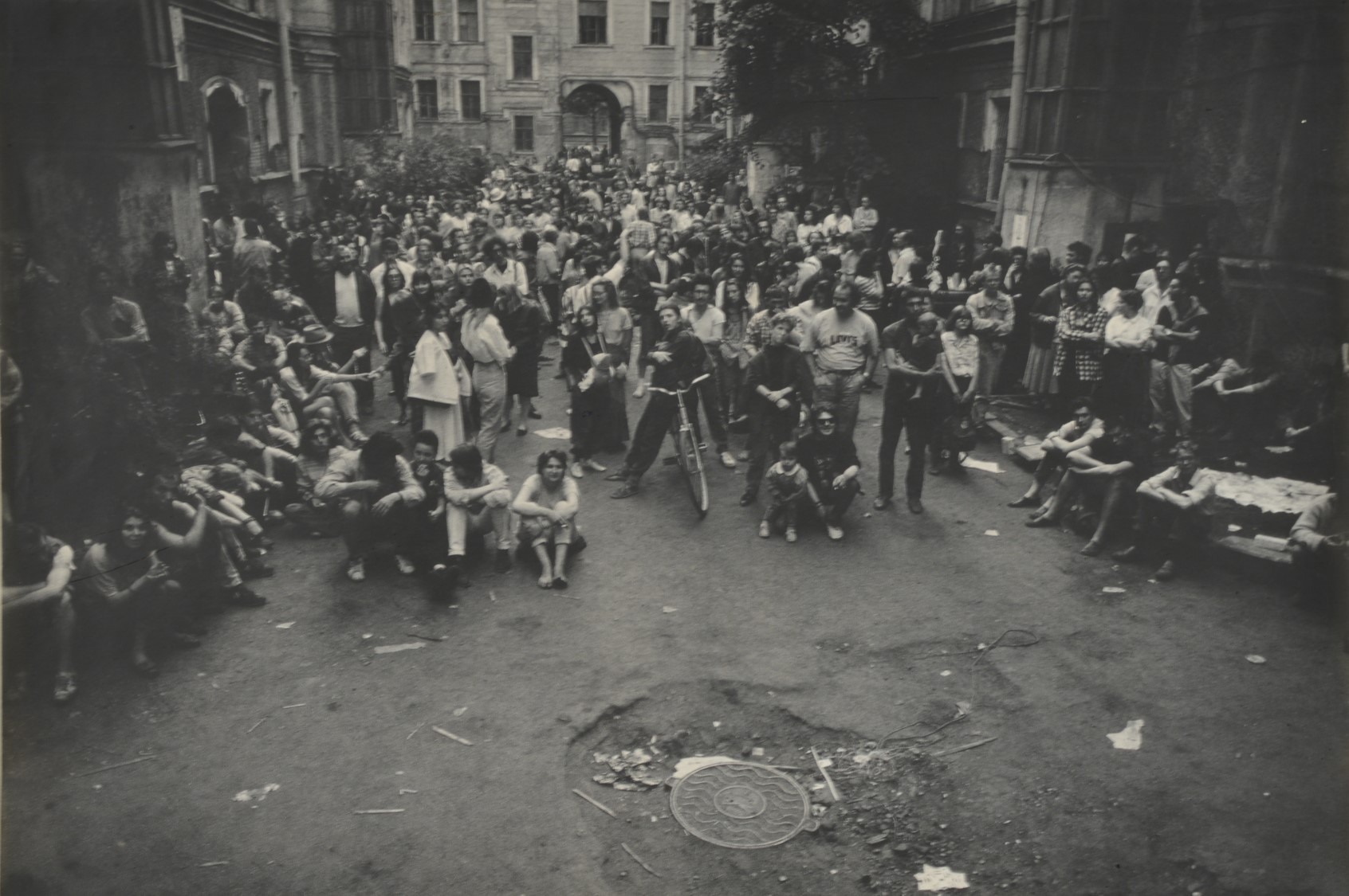 А. Р.: Есть хорошая история. На «Пушкинскую» я попал через год после её образования, тогда было очень много квартир и мастерских в этом здании. Смотрел я здесь как-то телевизор, а по телевизору исполняет песню Шевчук — «ДДТ», концерт. Мне нужно было куда-то сходить, спускаюсь, выхожу из арки; навстречу мне идёт Шевчук — живьём, с товарищем, в мастерскую куда-то. Возвращаюсь, а Шевчук опять навстречу идёт. Я прихожу в мастерскую, включаю телевизор — и там он!!!
